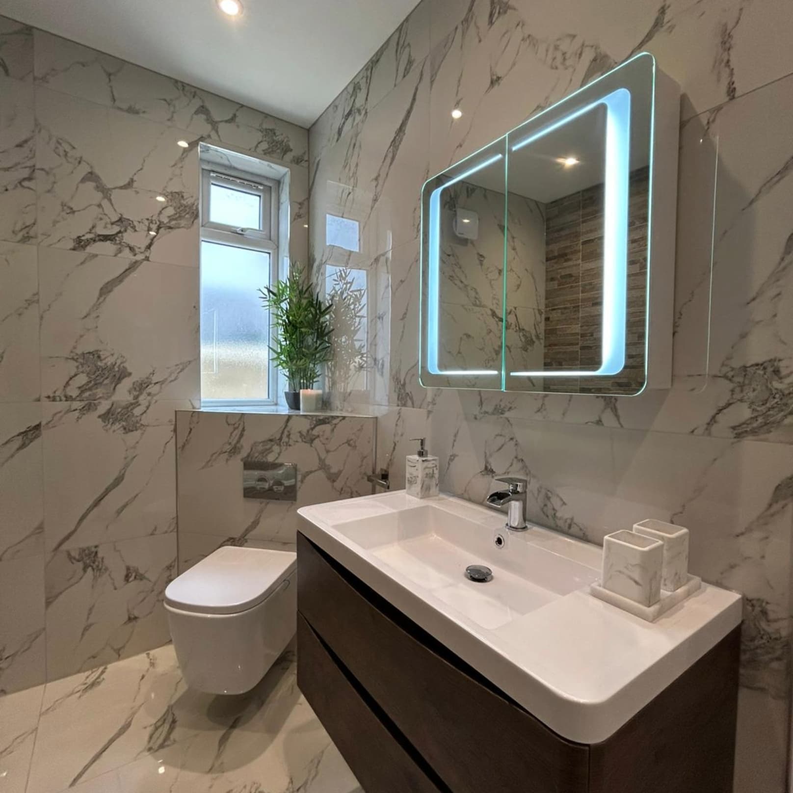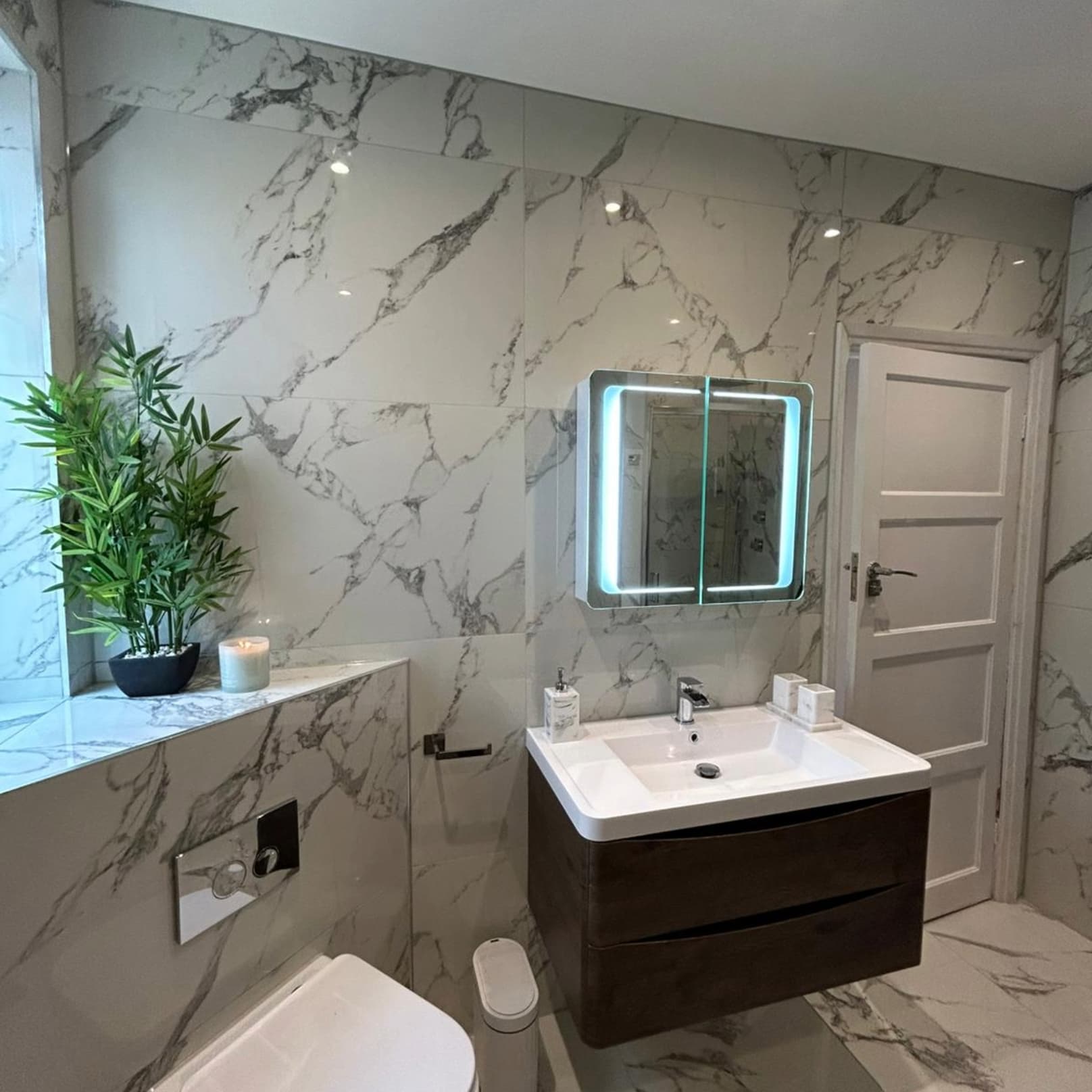 A complete transformation of a dated family bathroom into a contemporary spa-like retreat. This project maximized limited space through clever design while incorporating premium materials and luxury fixtures that elevated the entire home's value.