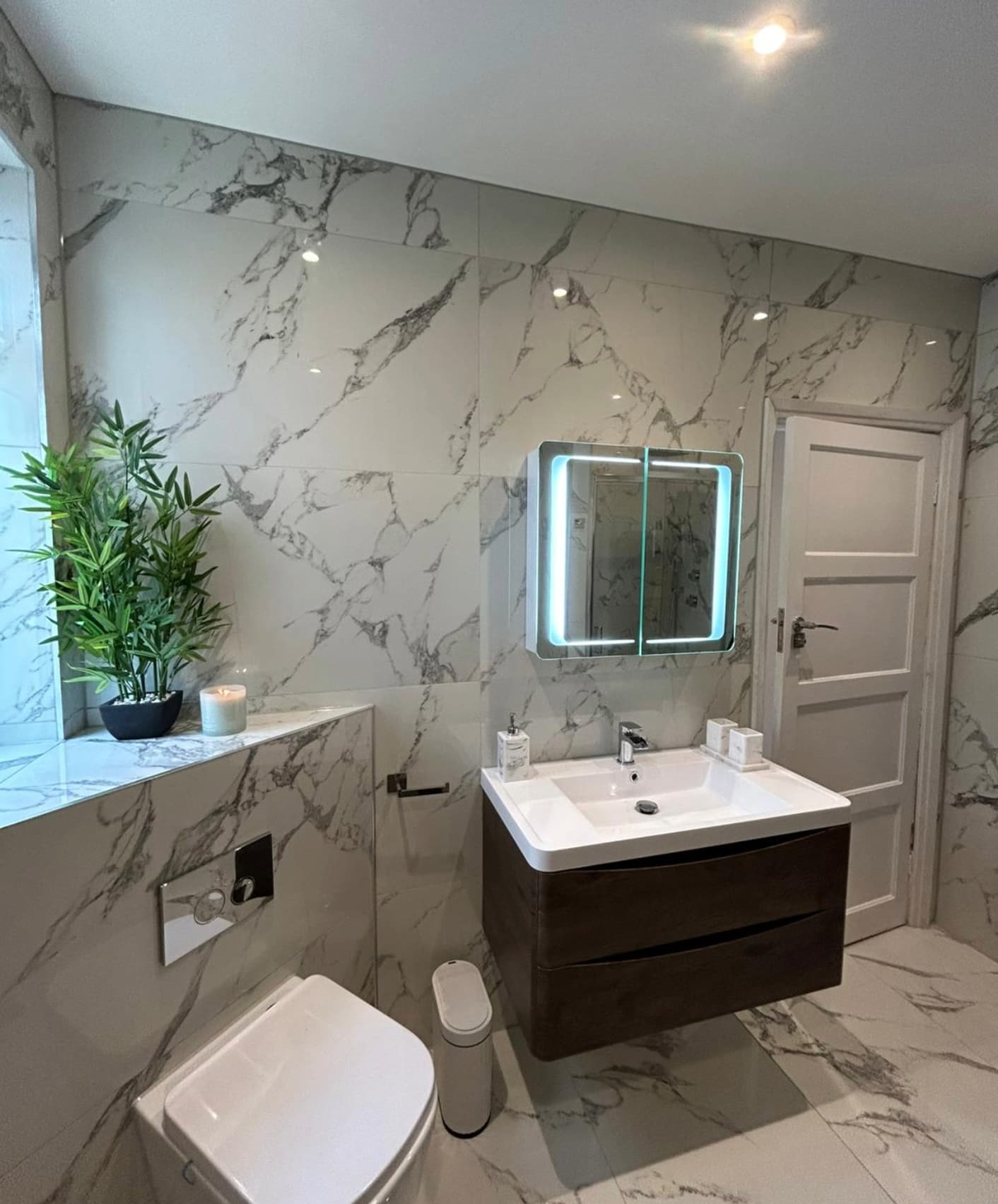 Browse this stunning transformation showcasing precision tile work, custom storage solutions, and premium finishes. See how thoughtful design and expert craftsmanship turned a challenging compact space into a luxurious daily retreat that perfectly balances style with family functionality.